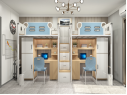 公寓書桌床: 1、公寓床架: (1)雙人位公寓床,尺寸長(zhǎng)4500mm,寬900mm,高2100mm。 (2)床立柱:采用正六邊形無(wú)縫鋼管,直徑65mm(±...點(diǎn)擊詳情